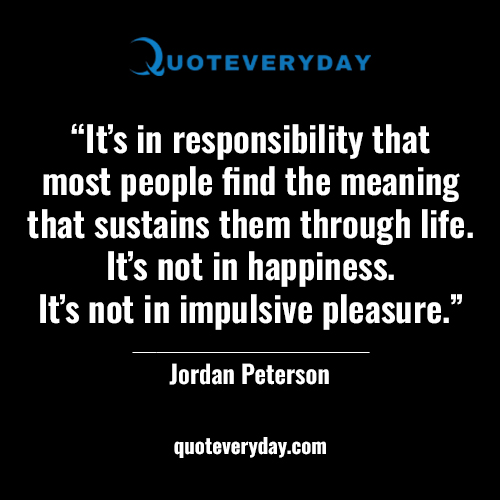 “It’s in responsibility that most people find the meaning that sustains them through life. It’s not in happiness. It’s not in impulsive pleasure.”